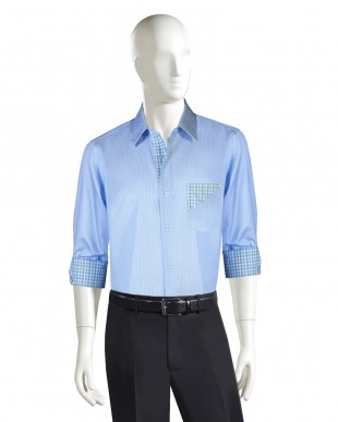 • CONTRASTING PIPING ON PLACKET AND CUFF EDGES