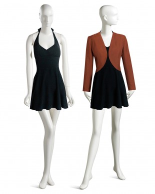 • CONTRASTING TRIM ON NECKLINE, RIGHT FRONT AND CUFFS